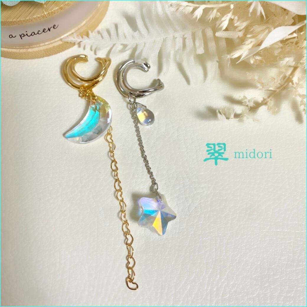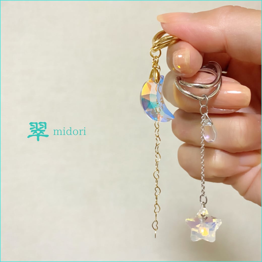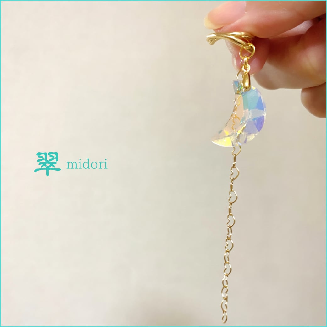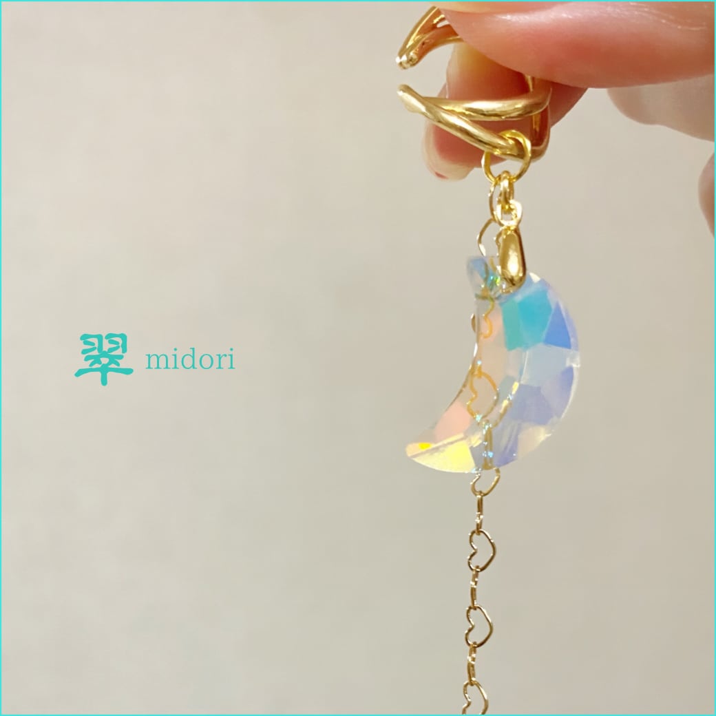 イヤーカフ本体に、ハートのチェーンと月のチャームが着いたイヤーカフです。