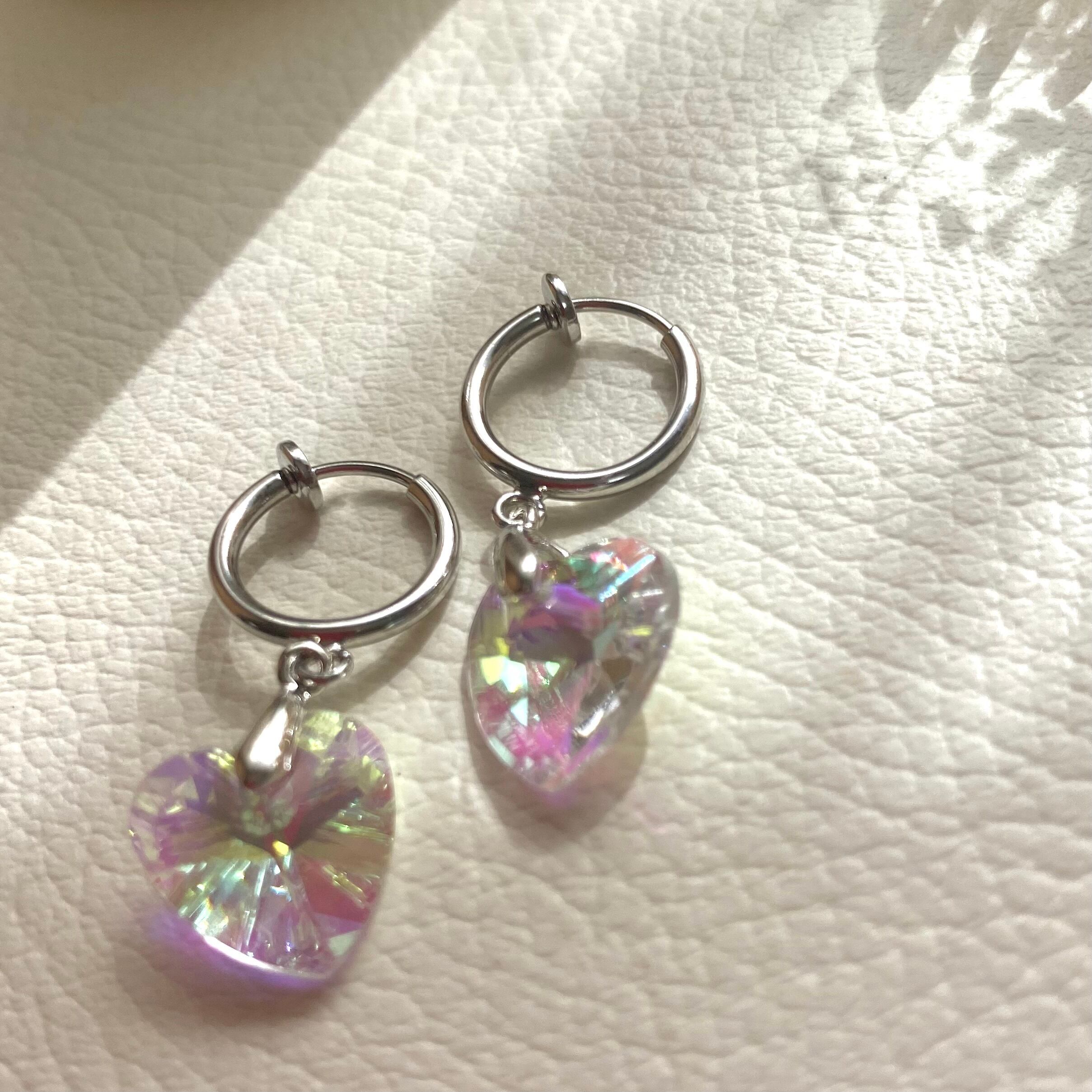 ハートのガラスチャームのついたイヤリングです。