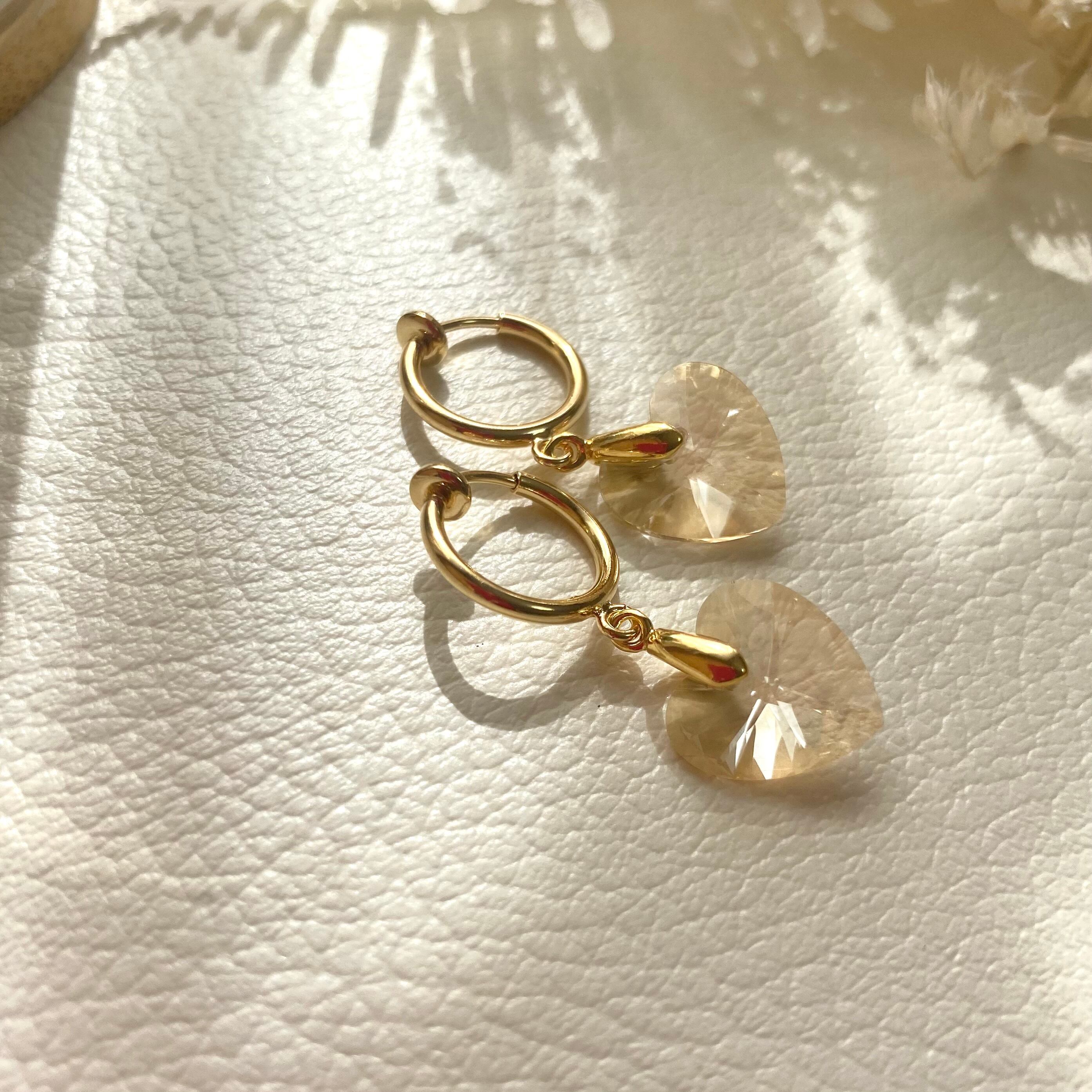 ハートのガラスチャームのついたイヤリングです。