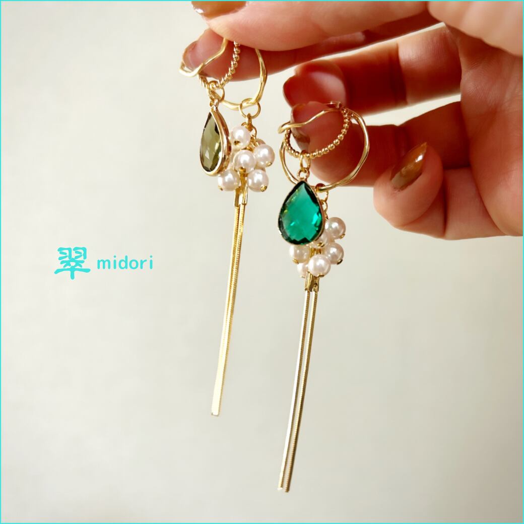 約4mmパールビーズを8個としずく型のチャームを組み合わせたイヤーカフです。